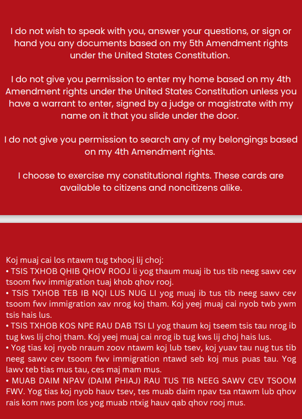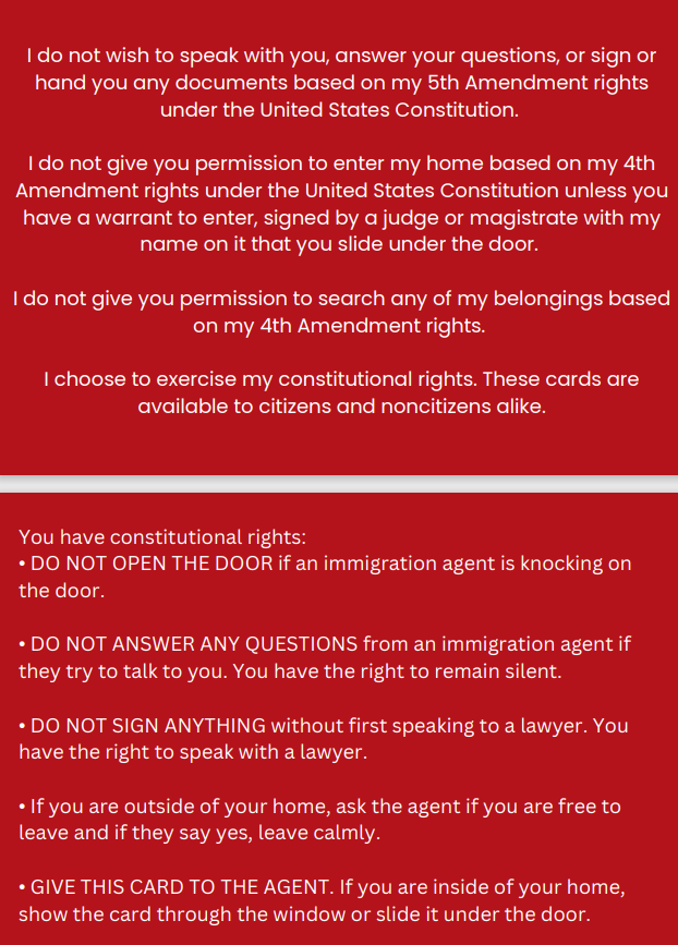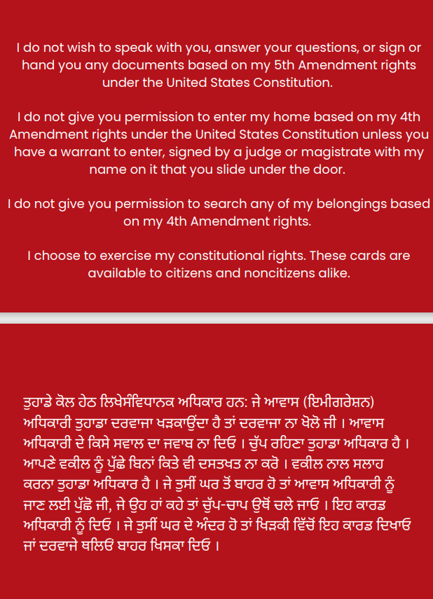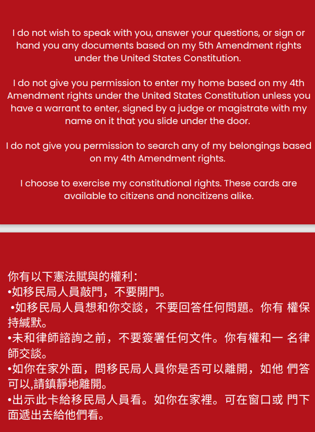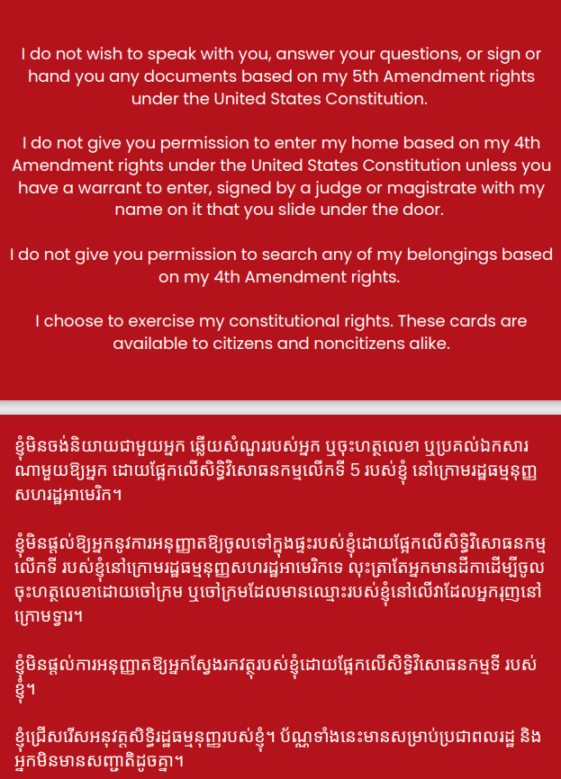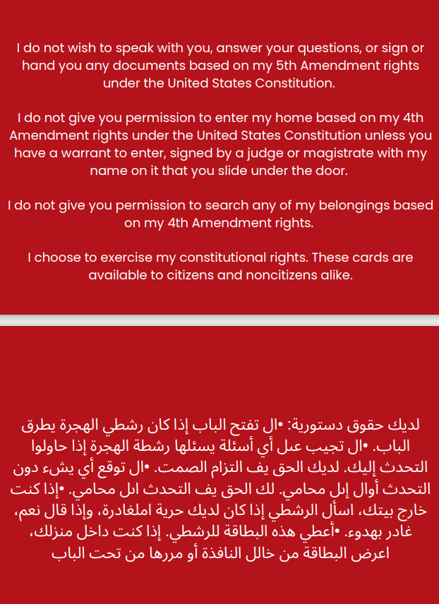 You may screenshot or download your respective card to keep on your electronic device. Show your card to anyone to indicate your constitutional rights.